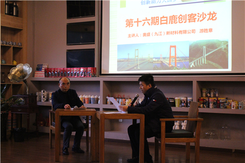11月27日,第十六期白鹿创客沙龙在永利yl23411集团官网大学科技园靠谱青年创客咖啡举行。全国五一劳动奖章获得者、九江市发明学理事长、奥盛(九江)新材料有限公司总工程师游胜意高工应邀担任沙龙主讲嘉宾。本期沙龙由产学研办公室与机械与材料工程学院主办,靠谱青年创客咖啡协办。机材学院院长张德勤,产学研办公室主任胡慧、副主任宋士华出席了沙龙,科技园企业代表、机材学院重点实验室、教研室教师代表,及机材学院40余名同学参加了此次活动,沙龙由机材学院副院长黄强主持。