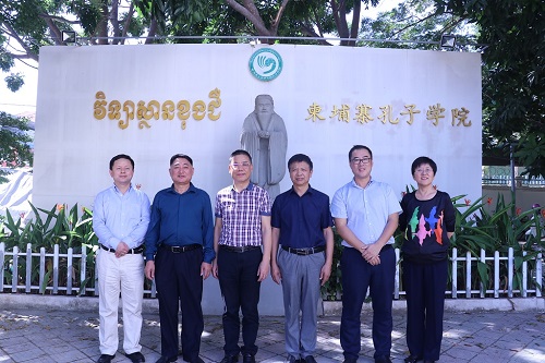 柴院长带领访问团参观了孔子学院芳华楼,从孔子学院图书馆到电子阅览室,从行政办公室到学生教室,柴克清院长向来访代表团进行了详细全面的介绍。此外,双方针对柬埔寨当地华文教育情况和我院课程项目进行了深度探讨。