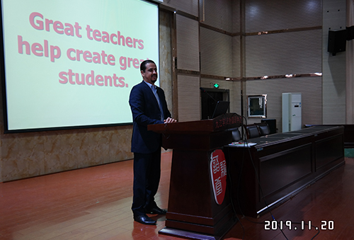 为了落实外国语学院“学术活动月”的各项活动,结合“不忘初心,牢记使命”主题教育的内容,外国语学院于2019年11月20日下午在香远楼报告厅举行了外籍博士讲座。外国语学院院长韩琨、党委书记罗其娟及所有专业教师参加了此次讲座。讲座由外国语学院副院长周志高教授主持。