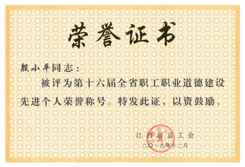 为大力弘扬劳模精神、劳动精神、工匠精神,加快建设富裕美丽幸福现代化江西。近日,江西省总工会表彰了一批勇于创新、业绩突出、爱岗敬业的先进集体和个人,临床医学院/附属医院党委副书记、副院长殷小平教授被授予“全省职工职业道德建设先进个人”光荣称号。