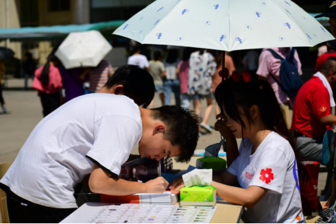 学生爱心捐款后正在登记