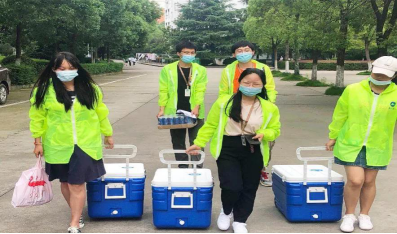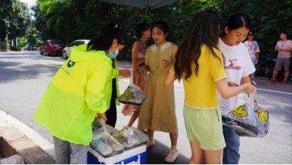 送餐时,工作人员会使用专业保温箱从食堂运送到指定取餐点与订餐者交接。所有工作人员均会穿着工作服、佩戴口罩、进行基本消毒等,且在此过程中,食堂负责人和“鹿小明”的送餐负责人将会共同监督,进一步保障了每一份餐食的安全。