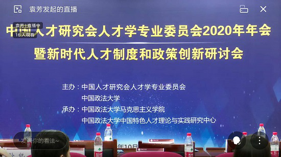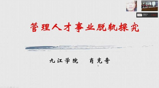 此次会议由中国人才研究会人才学专业委员会与中国政法大学马克思主义学院、中国特色人才理论与实践研究中心联合举办,因疫情防控的需要,会议采用线下+线上相结合方式。永利yl23411集团官网马克思主义学院肖克奇教授就管理人才脱轨的定义与特点、脱轨的后果与原因以及规避管理人才脱轨策略等内容进行了线上发言。
