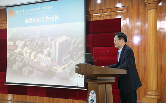 九江市卫生健康委员会党委委员、副主任何剑锋代表市卫健委致欢迎辞,九江学院附属医院党委书记张南华向专家一一介绍参会人员,并对专家一行的到来表示欢迎和感谢,希望各位专家对医院胸痛中心建设提出宝贵意见,帮助医院以问题为导向,加速推进胸痛中心的发展。