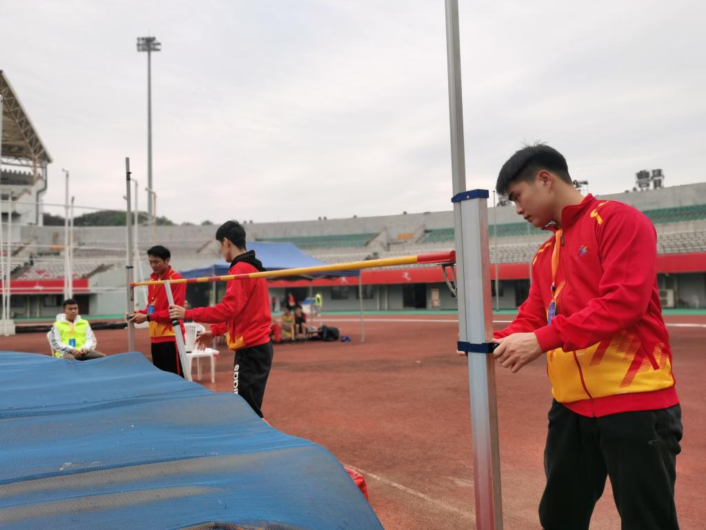 10月24日中午,比赛总负责人、国家级田径裁判员黄卫东老师在田径馆组织全体裁判员会议,对全体裁判员执裁工作提出了严格要求。下午,全体裁判员到九江市体育中心集合与志愿者对接,各裁判组检查场地器械,进行现场联调。