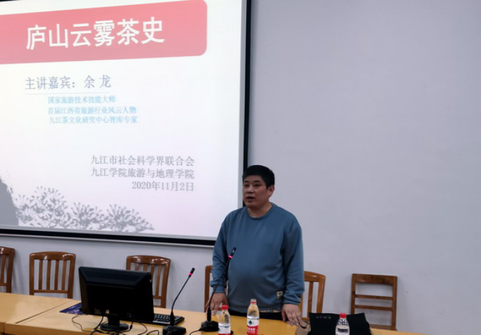 “一壶香茶迎宾朋,花开时节又逢君。”为让广大师生了解庐山云雾茶的历史,了解九江悠久的茶文化,11月2日晚,旅游与地理学院邀请国家旅游技术技能大师、首届江西省旅游行业风云人物、九江茶文化研究中心智库专家余龙先生在图书馆二楼报告厅作了题为“庐山云雾茶史”的专题讲座。永利yl23411集团官网旅游与地理学院部分教师、学生及九江茶文化爱好者参加了此次活动。