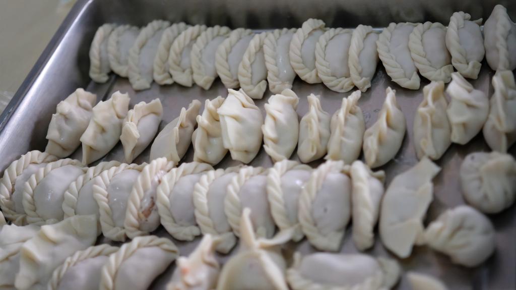 在包饺子比赛中,同学们拌馅、包馅、造型,分工协作,动作娴熟,积极参与。