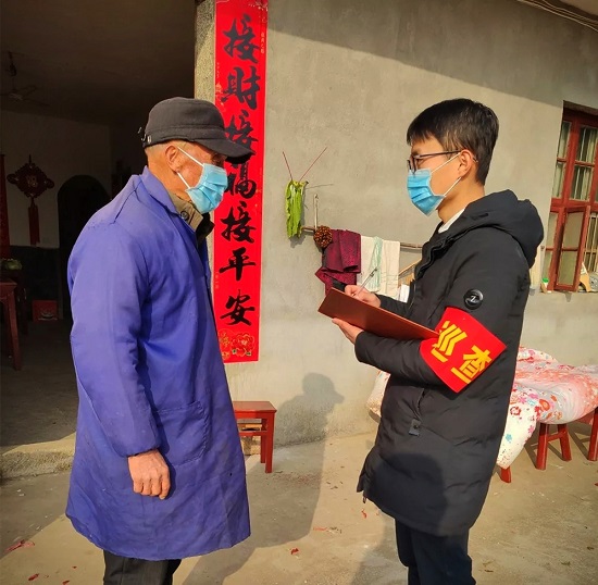新冠肺炎抗疫“战”中熊洪越在挨家挨户巡查