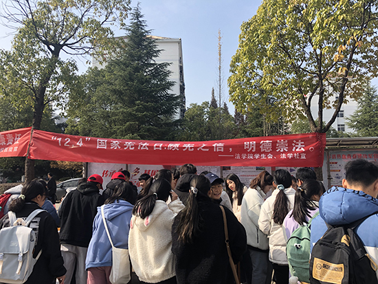 此次活动由法学院团委学生会、法学社联合校学生会权益部主办。师生们表示,此次普法宣传活动弘扬了宪法精神,增强了大家的宪法意识,营造了学法、知法、守法、用法的良好氛围。