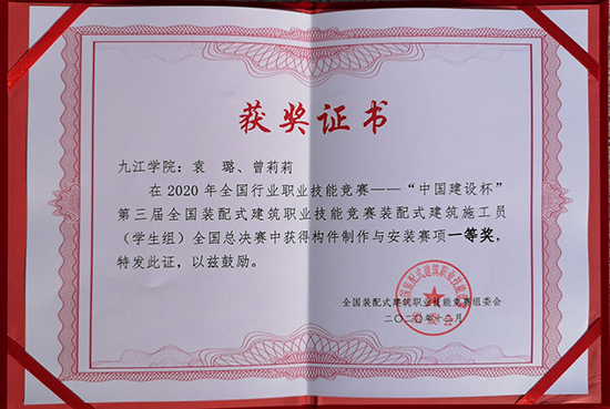12月4-6日,“中国建设杯”第三届全国装配式建筑职业技能竞赛选拔赛在郑州隆重举行。永利yl23411集团官网建工学院的师生代表队获得了两项一等奖,两项优秀指导教师奖。此次比赛中,永利yl23411集团官网为江西省唯一获得两个赛项一等奖的院校,实现了跨越式的突破。