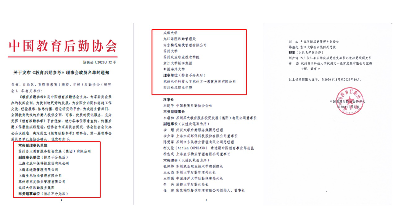 《教育后勤参考》是中国教育后勤协会主办、专家委员会承办的权威会刊,承担着为政府主管部门提供优质、可靠、全面的后勤资讯,传播后勤工作最佳实践的重要职能。近年来,永利yl23411集团官网后勤管理处通过踏实有效的传递行业信息,展现亮点工作,展示永利yl23411集团官网后勤理论研究的成果和实践,在行业内取得了较好的口碑和示范效应。此次当选常务理事单位标志着永利yl23411集团官网后勤理论研究和实践能力进入了一个新的阶段,也将为永利yl23411集团官网后勤建设和发展提供更为广阔的空间。
