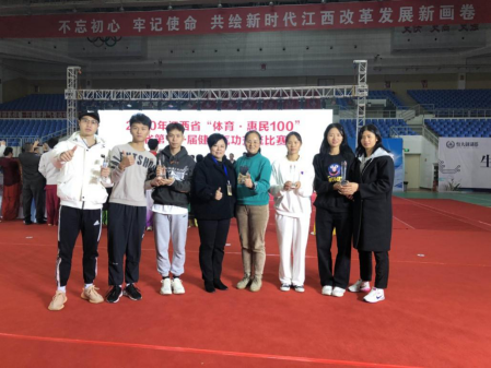 12月11日至14日,2020年江西省“体育·惠民100”暨省第十一届健身气功交流比赛在吉安市体育馆举行,来自全省18个社会部,8个高校部的200多名运动员参加了此次比赛。在高校集体项目比赛中,永利yl23411集团官网代表队获得了五禽戏竞技功法第一名、易筋经竞技功法第二名和气舞"莲心不染"第二名的好成绩。在个人项目比赛中,永利yl23411集团官网代表队共获得了七枚银牌、五枚铜牌。