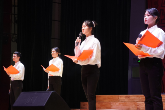 青春歌曲联唱过后,该院播音与主持艺术专业同学带来的集体诗歌朗诵《相信》,气势恢宏,动人心弦,将观众思绪带回到全国上下齐心合力、日夜鏖战的2020上半年;辅导员杨珍老师和同学们带来的歌曲《最美的约定》、《红旗飘飘》,唱腔优美,舞姿曼妙,礼赞了党中央脱贫攻坚的英明决策,讴歌了我们伟大的祖国。