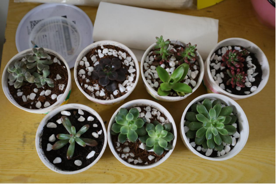 三位支教女生在床头柜上摆放的绿植