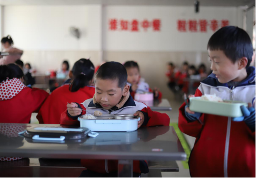 涌小学生在食堂吃饭