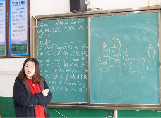 办公室面积不大,大约四十平米,里面能够容纳12位老师同时办公,三位支教老师的办公桌是紧挨着的,三个陌不相识的九院学生现如今成了风雨同舟的好姐妹。她们来到这里共同教学已经三月有余,教学对象为一、二、三、五、六年级的一百多名学生,且深受学生们的欢迎。