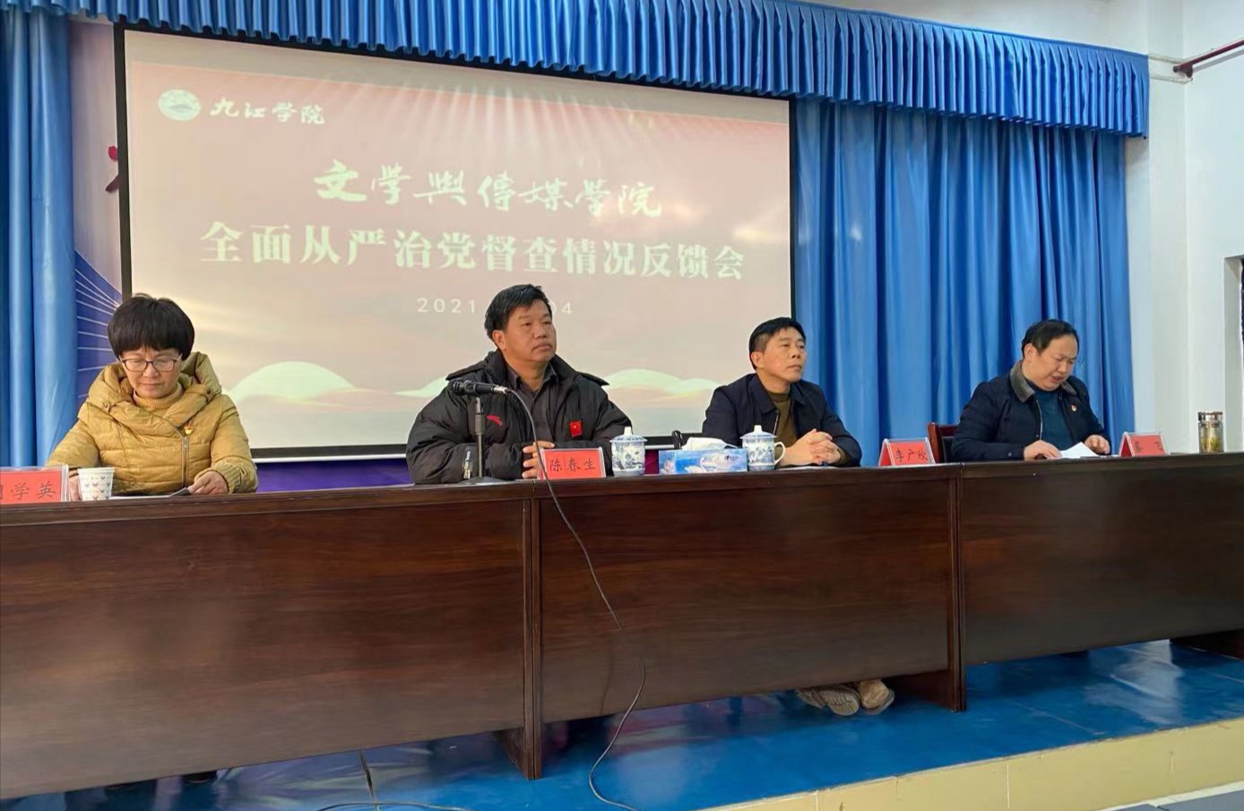 1月4日下午,学校全面从严治党督查组在文学与传媒学院召开督查情况反馈会。副校长陈春生,党委委员、纪委书记李广欣出席会议,督查组全体成员及文传学院领导班子和师生代表参加会议。