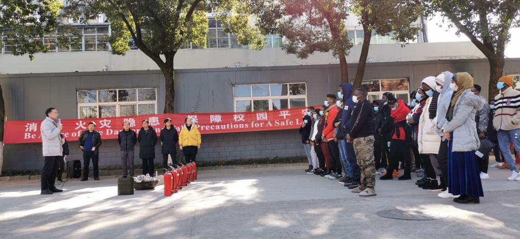 在活动现场,国际交流学院院长夏修龙对留学生防火安全提出了要求,他希望留学生首先要了解消防安全知识,提高消防安全意识,掌握消防安全基本技能;要养成良好的消防安全习惯,不使用大功率电器和违章电器,希望大家在疫情防控的特殊时期重视消防安全,防微杜渐,度过一个安全的寒假。