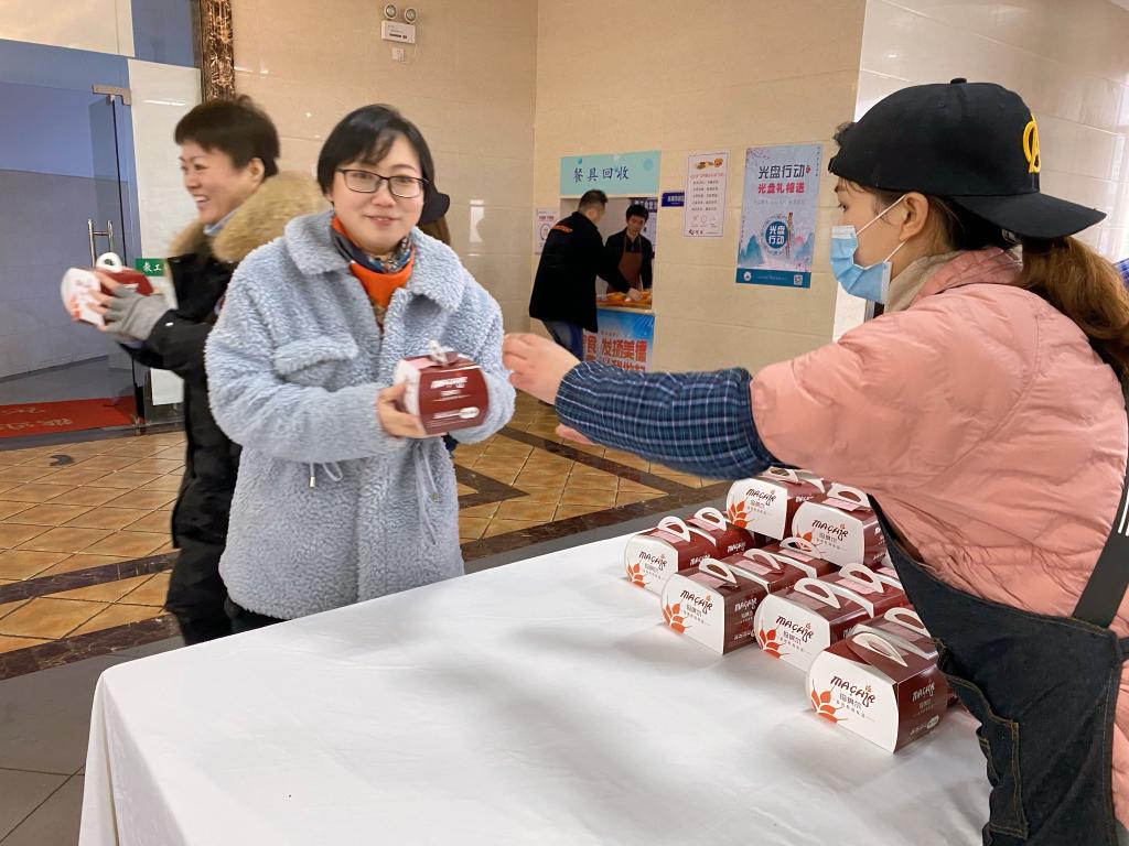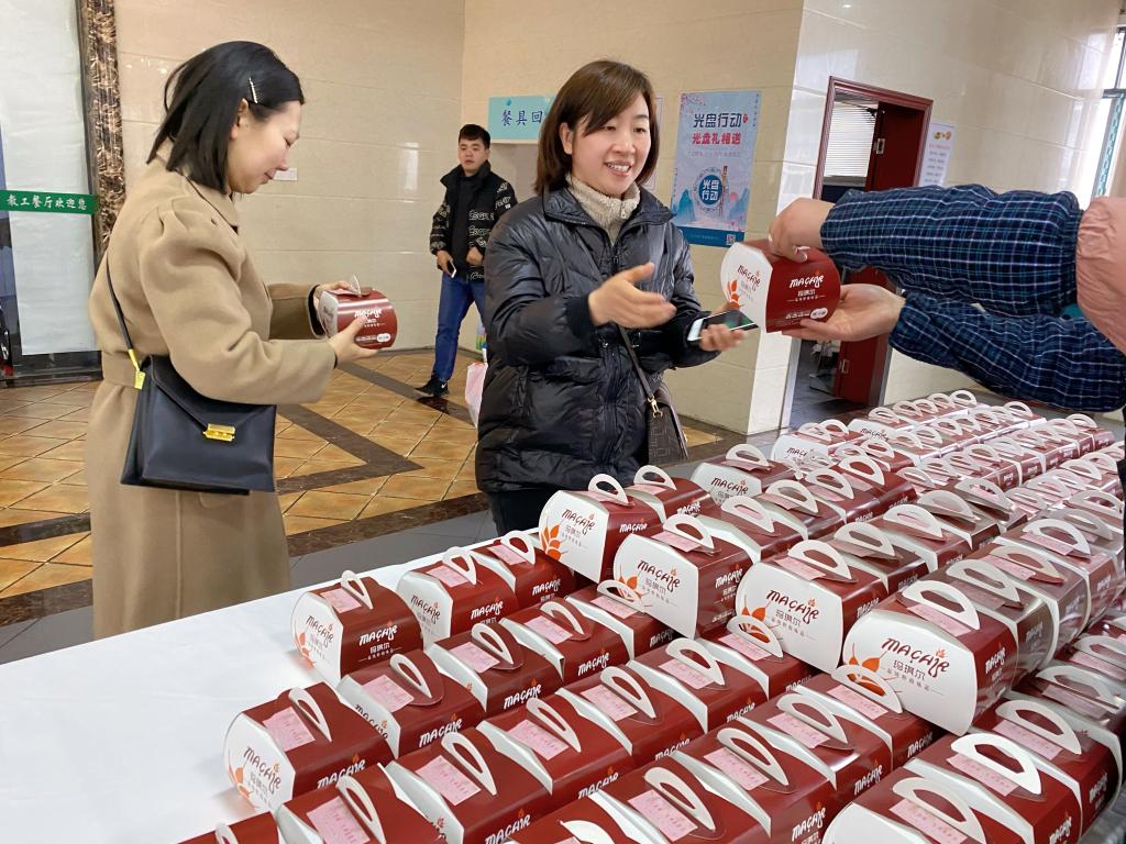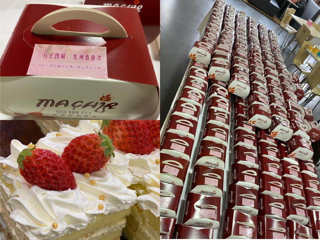 前来就餐的女教职工们拿到这些可爱的小蛋糕,看着蛋糕盒上“三八宏图展,九洲春意浓,九院后勤向女神们致以节日问候”的温馨话语,欣喜之情溢于言表,个个拿着蛋糕爱不释手。“这么可爱的小蛋糕,实在是舍不得吃掉”有女老师表示。