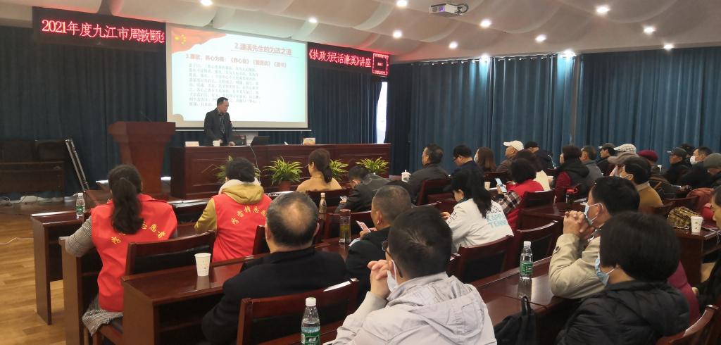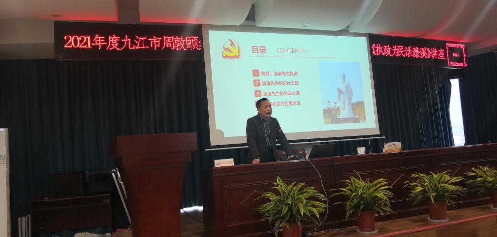 讲座由九江市文化广电新闻出版旅游局主办,九江市文物局、九江市周敦颐纪念馆承办。李勤合教授以《执政为民话濂溪》为题,介绍了周敦颐作为一位长期担任宋代州县基层官员的出仕之路、为政之道和仕隐情节。