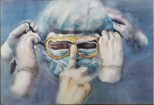 据授课老师熊晓洁副教授介绍,整个展览从准备、布展,大到展示设计小到装裱、滚乳胶漆都是该院2018级美术学师生亲力亲为,师生在共同动手实践中不断成长和进步。水彩创作内容丰富形式多样,同时也将思政课程潜移默化地融入到了学生水彩创作题材中:例如建党百年辉煌、战胜疫情、抗震救灾、抗洪抢险、留守儿童、非遗文化、人文风景等。