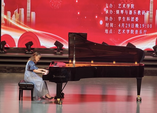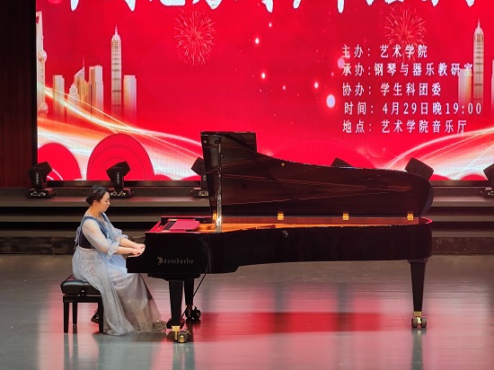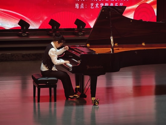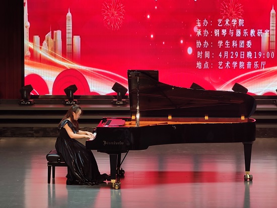 最后,钢琴演奏博士何雨婷老师为大家带来了钢琴曲《彩云追月》《皮黄》,她高超的演奏技巧、深厚的音乐功底、完美的艺术表达把音乐会推向了高潮。