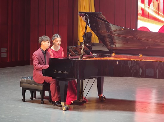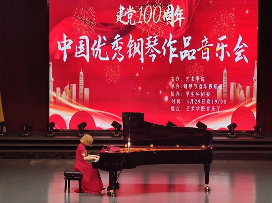 为庆祝中国共产党成立一百周年,传承红色基因,4月29日晚,中国优秀钢琴作品音乐会在永利yl23411集团官网艺术学院音乐厅举行。副校长查振华、陈小林、艺术学院党政负责人和音乐专业师生观看了本次音乐会。