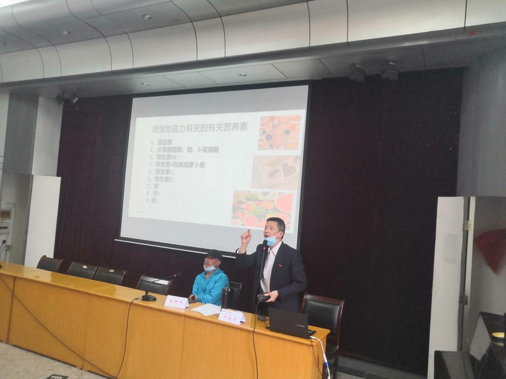 讲座中,严晓华教授从中老年人身体机能特点分析开始,围绕健康与营养、营养助力与抗疫、抗病,饮食营养调理慢病,糖尿病的预防与营养治疗几个方面作了讲解,他结合日常生活实际,用通俗易懂的语言,重点讲了饮食营养调慢病的原理,强调控制慢性病发病的危险因素,重在防御的道理,着重指出老年人在平时生活中要注意营养合理,平衡膳食,多清淡少油腻。