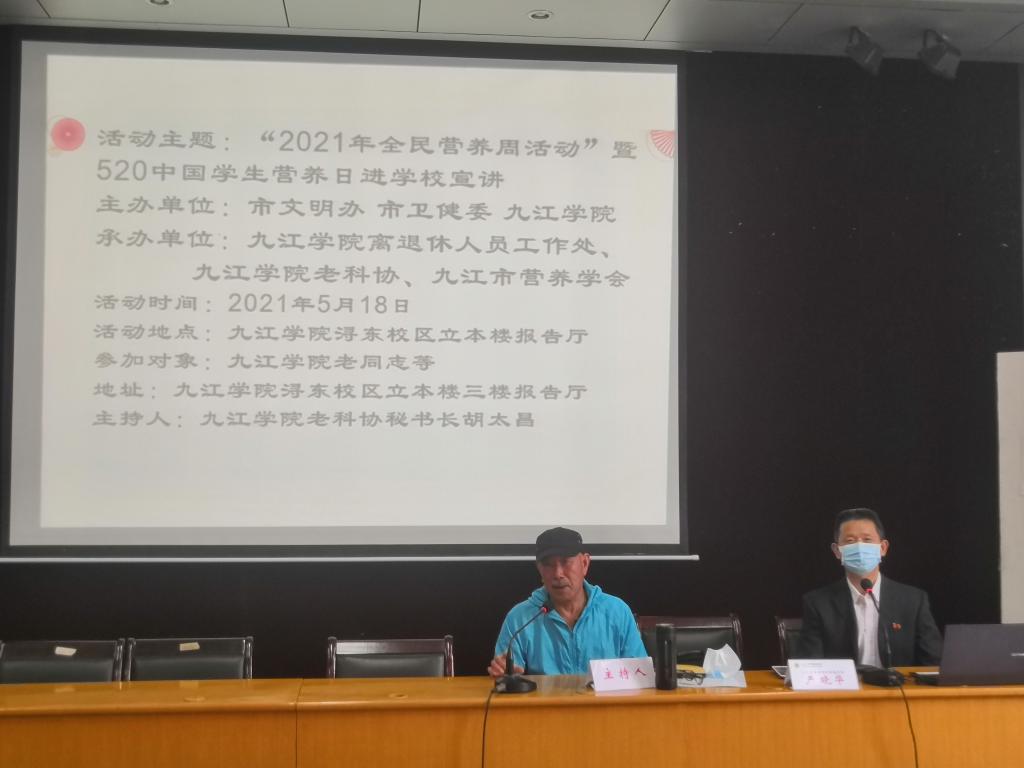 5月17日—5月23日是中国全民营养周。为了提高永利yl23411集团官网离退休老同志的营养健康意识,普及营养健康知识,有效防范各类中老年人常见疾病,永利yl23411集团官网离退休人员工作处联合九江学院老科协于5月18日下午组织开展了一场精彩的营养健康讲座——《中老年营养健康养生保健》。讲座由九江营养学会理事长、药生学院严晓华教授在浔东校区立本楼三楼报告厅讲授,来自永利yl23411集团官网四个校区的70余名老同志聆听了讲座。