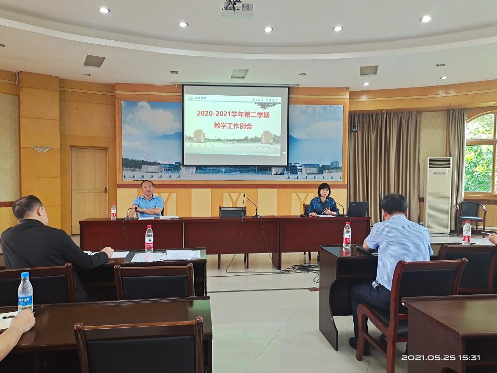 为进一步落实学校第三届教职工代表大会精神,统一思想、凝聚共识、深化教育教学改革,部署学校下一阶段教学工作,学校于5月25日下午在行政楼四楼会议室召开2020-2021学年第二学期教学工作例会。教务处、教学质量监控与评估中心、教师教学发展中心、实验中心、医学部等部门负责人,二级学院教学副院长和教务科长及教务处相关人员参加了会议。