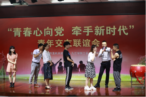 7月4日下午,由校工会、校团委、市直机关团工委联合举办"青春心向党 牵手新时代"为主题的青年交友联谊会在校工会三楼多功能厅举行。九江学院、附属医院、市直机关纪委、法院、公安等单位和部门160余名单身青年参加了联谊会。