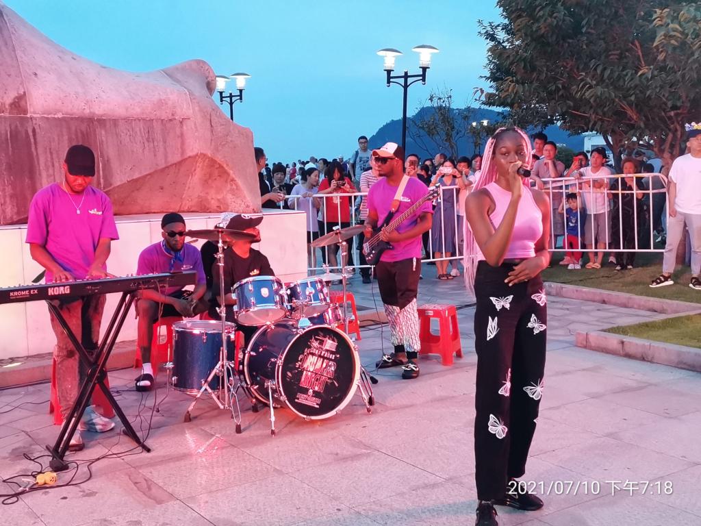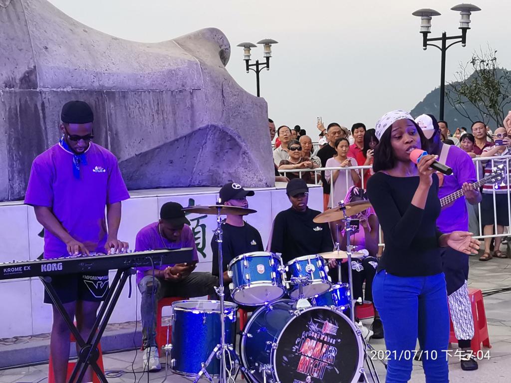 7月9日晚上,首场文化艺术表演志愿活动在庐山牯岭镇街心公园开演,中外学生欢聚一堂,共同奉献了精彩演出。永利yl23411集团官网派出的留学生志愿者服务队,演唱了“重温往日情怀”“月亮代表我的心”“朋友”和“我爱你中国”等十余首中外文流行歌曲和校园民谣。志愿演出活动受到现场观众的热烈欢迎,来自全国各地的游客把舞台围得水泄不通,现场气氛十分热烈,演员与观众频频互动,不少观众跃跃欲试,上台一展歌喉。