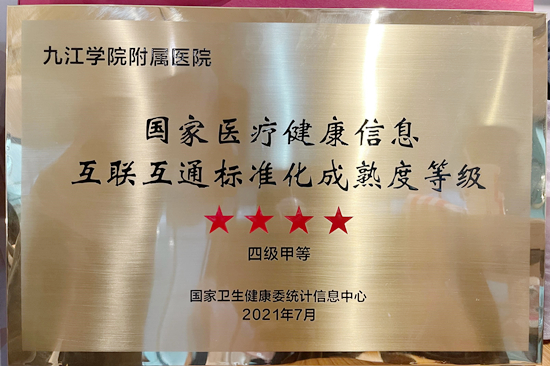 7月10日,2021(16th)中国卫生信息技术交流大会在武汉召开。会上,国家卫生健康委统计信息中心公布2020年度第一批通过国家医疗健康信息互联互通标准化成熟度测评单位名单,正式宣布九江学院附属医院通过互联互通四级甲等测评。这是九江市第一家通过国家医疗健康信息互联互通标准化四级甲等及以上等级的医院。