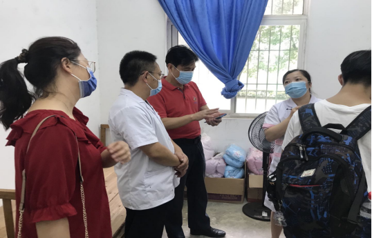 9月6日、7日,副校长杨耀防在校医院、医学部负责同志等一行人的陪同下分别到校园各疫情防控点检查指导工作并看望校医院疫情防控一线医护人员。