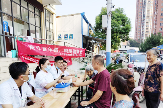 在金鸡坡街道“奋斗百年路 附院健康行”义诊活动现场,以胃肠外科医护团队为主的医院义诊专家联合金鸡坡街道社区卫生服务中心走进社区,开展主题义诊和志愿服务活动。