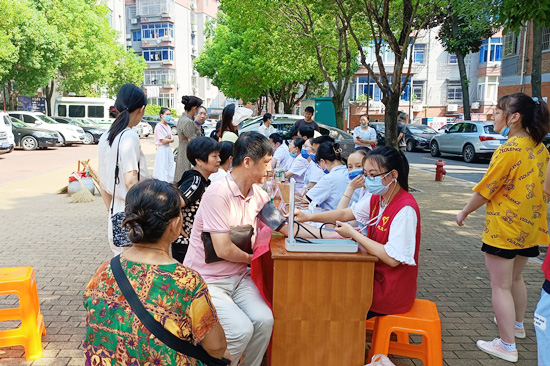 活动中,附属医院专家团队热情地为社区居民提供免费测量血压、血糖等服务,在诊治过程中,医生们为前来就诊的居民进行了认真细致的检查,耐心询问他们的日常习惯及身体状况,并针对病情做出专业性诊断。居民王阿姨表示:“相当于自家小区就做了个免费的简单体检,不用大老远地跑去医院,这样贴心的医疗服务真的很赞!”