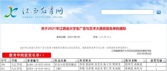 9月17日,2021年第十三届全国大学生广告艺术大赛全国总决赛获奖名单公布,永利yl23411集团官网教育学院选送的2项作品在全国481947组作品中过关斩将荣获佳绩。其中由蒋枫霆、蒋常均老师指导,李腾、吴章慧、刘述皇、董仁智、朱旭楠同学共同创作的微电影作品《酸》荣获全国总决赛三等奖、江西省级一等奖,这也是永利yl23411集团官网在国赛微电影类别中唯一一项获得等级奖的作品;由殷明芳、蒋枫霆老师共同指导,李艳、蔡丽彬、张雯佳、杨子欣、樊辉美同学创作的微电影作品《牙齿与奶茶的邂逅》荣获江西省级一等奖。此项赛绩实现了教育学院在大广赛全国总决赛等级奖中“零”的突破。
