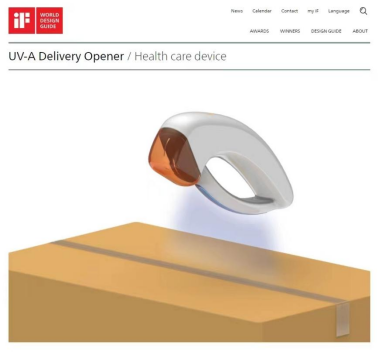 近日,永利yl23411集团官网艺术学院2018级本科生张昕宇的作品“UV-A Delivery Opener”入选2021年德国iF设计奖世界设计指南(iFWORLD DESIGN GUIDE),并被收录在学生概念单元(STUDENT CONCEPTS)。这是艺术学院产品设计本科生首次获得此类殊荣,创造了学生获得此类国际重要设计赛事荣誉的历史。以上作品由艺术学院教师李苒指导完成。
