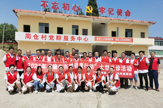 为庆祝中国共产党成立100周年,深入贯彻党中央关于开展党史学习教育的决策部署,结合“我为群众办实事”实践活动,近日,九江学院附属医院组织专家团队前往都昌县多宝乡周仓村和濂溪区中国中铁四局集团开展义诊活动。