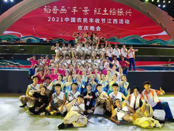 9月25日,由江西省农业农村厅、九江市人民政府主办,江西广播电台、江西文化演艺发展集团、彭泽县人民政府协办的“百年风华感党恩、产业兴旺庆丰收——2021中国农民丰收节江西活动开幕式”在九江市彭泽县举行,永利yl23411集团官网艺术学院音乐、舞蹈专业近300名师生承担并圆满完成了开幕式和晚会演出任务,他们精彩的表演和大型活动中吃苦耐劳的精神获得了主办方的高度评价。