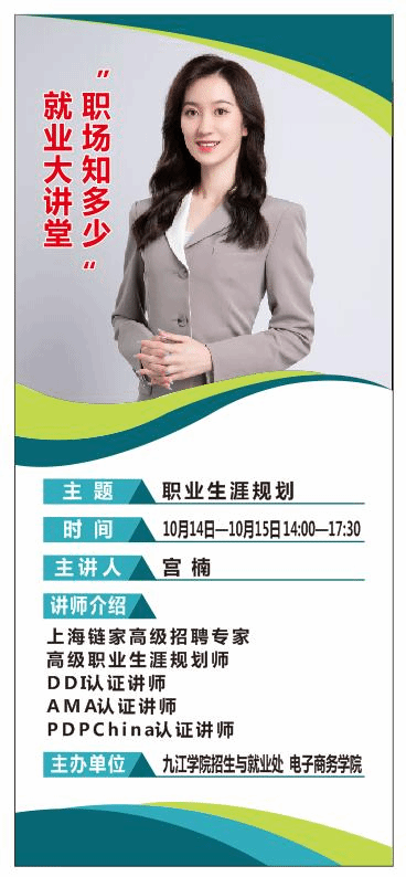 为进一步帮助2022届毕业生丰富就业知识、解答就业疑惑、转变就业观念、提升就业能力,10月14日下午,由招生与就业处和电子商务学院联合组织开展的“职场知多少”就业大讲堂活动邀请来了高级职业生涯规划师、上海链家高级招聘专家宫楠老师为该院同学们进行就业指导。据招就处工作人员介绍,此次邀请校外招聘专家进校上就业指导课是永利yl23411集团官网开展“提升毕业生就业能力建设”的初步尝试,电子商务学院作为永利yl23411集团官网第一个试点学院,给予了活动大力支持。