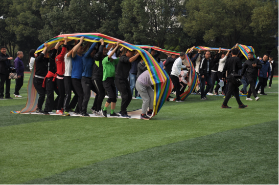 本次运动会分为毛毛虫竞速、无敌风火轮、袋鼠跳、“筷”运乒乓球4个团体项目。教职工们激情盎然,团结协作,默契地完成了各项比赛项目。