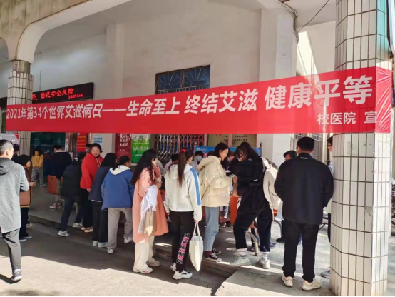 活动现场通过悬挂宣传横幅、展出宣传展板、发放宣传资料和计生用品等形式,广泛宣传艾滋病预防感染风险预防措施等基本知识,积极倡导师生主动检测,提高知艾防艾意识。