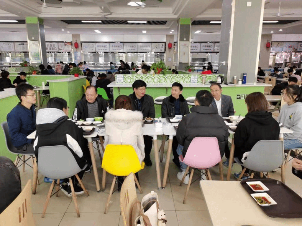 中午,王万山来到学生三食堂,与同学们共进午餐,边吃饭边和学生拉家常。“你来自哪里”、“爱吃什么菜”、“每个月生活费要多少钱”、“对食堂的饭菜满意吗”……细致入微的询问让在座的每一位学生都倍感温暖。