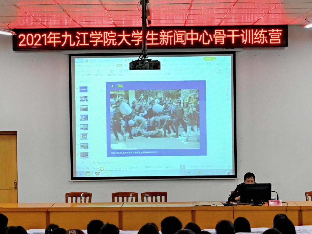 为期六天的培训活动中,党委宣传部特邀了校内外媒体专家给学生作指导,九江日报社党组成员、副总编、高级记者龙群,江西省摄影协会副主席、九江市摄影协会主席、九江日报副总编宋小勇,学校信息技术中心张生花副教授,新浪江西营销中心总监任彦斌,校文传学院播音教研室主任王苓副教授,《九江学院报》原编辑部主任、江西省高等学校校报研究会常务理事李龙老师分别进行了现场授课。课程内容十分丰富,涉及新闻采访与写作、摄影理论与实践、视频拍摄制作、新媒体运营技术方法、播音主持等内容。