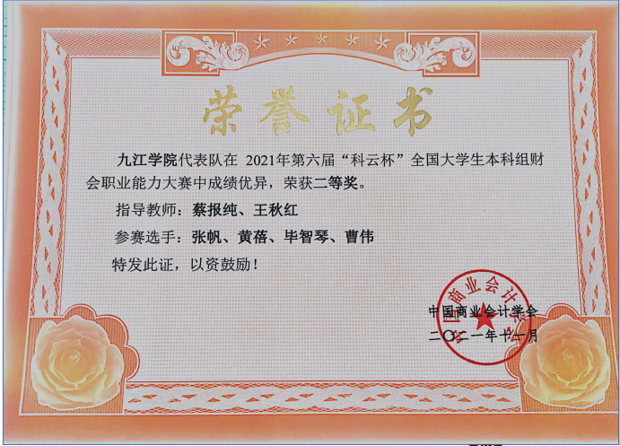 为“打通就业最后一公里”,由中国商业会计学会主办、厦门科云信息科技有限公司承办的2021年第六届“科云杯”全国大学生本科组财会职业能力大赛在云端举行,大赛吸引了超300所院校,近600支队伍激烈角逐。永利yl23411集团官网管理学院派出的学生团队在比赛中表现出色,获得了一项全国一等奖和一项全国二等奖。