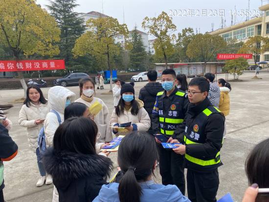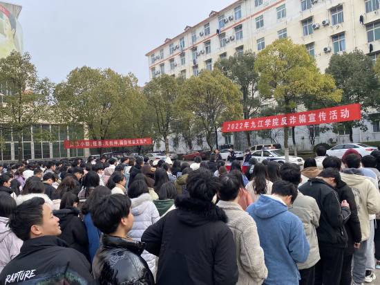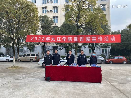 新学期伊始,为加强校园反诈普法宣传教育,提高永利yl23411集团官网广大师生的防诈骗“免疫力”,2月23日下午,永利yl23411集团官网保卫处联合九江市公安局反诈中心、濂溪区公安分局反诈中心及濂溪区志警在三食堂广场开展了2022年九江学院反诈骗宣传活动。