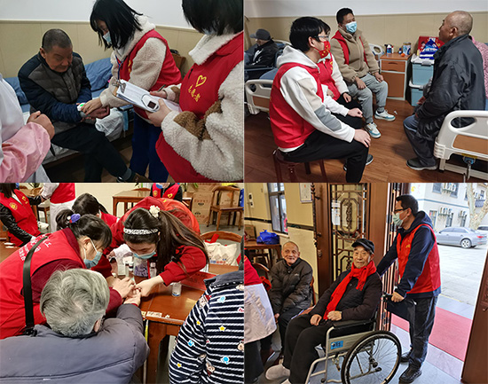 此次志愿服务活动联合了九江学院附属医院、九江市义工联合会共同参与。九医杏林青年志愿者们分工合作,任务明确。一部分志愿者上门一间间房为老人测体温、量血压,询问身体状况,进行日常健康监测;一部分志愿者陪老人聊天、帮老人按摩,一位老爷爷高兴地说:“我一眼就认出来你们了,希望你们以后能常来。”“我们会经常来的,多陪您聊聊天!”之前来过的志愿者回答。