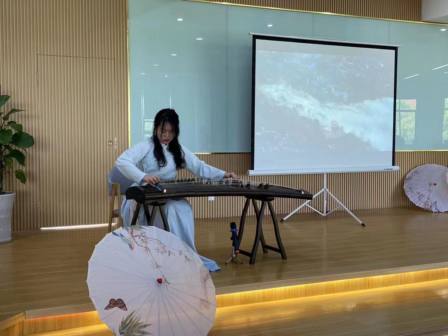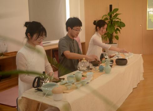 活动开始之前,同学们进行古筝演奏和茶艺展示,为大赛渲染了宁静、优雅的的氛围。