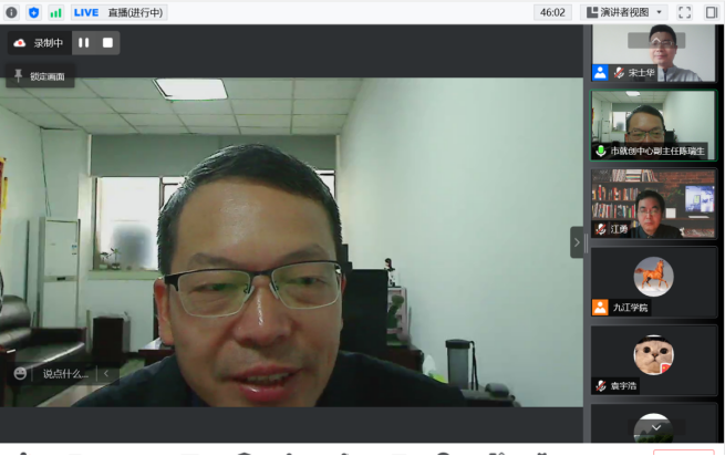 会上,受主要领导委托,陈春生代表学校对三位专家和市就业创业服务中心支持九江学院和九江高校的创新创业教育工作表示感谢。他表示,党的十八大对创新创业人才培养作出了重要部署,国务院也对加强创新创业教育提出明确要求,中国国际“互联网+”大学生创新创业大赛是我国深化创新创业教育改革的重要载体和关键平台。他介绍了近年来九江学院深化创新创业教育改革情况以及在2021年在“互联网+”大赛、“挑战杯”竞赛、工程实践和创新能力大赛等重量级国赛中实现突破、取得佳绩的情况。他表示,希望师生们认真聆听专家报告,通过学习尽快优化提升参赛项目质量,力争永利yl23411集团官网在第八届中国国际“互联网+”大学生创新创业大赛再创佳绩。